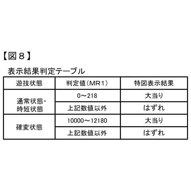 特徴部1のパチンコ遊技機における表示結果判定テーブルを示す説明図である。