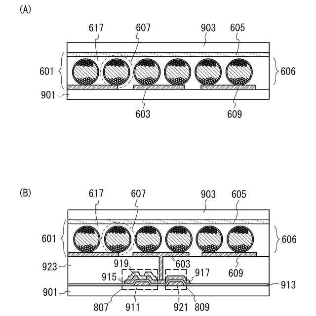 素電極と対向電極との間にマイクロカプセルを有するものが挙げられる。2つの電極間に