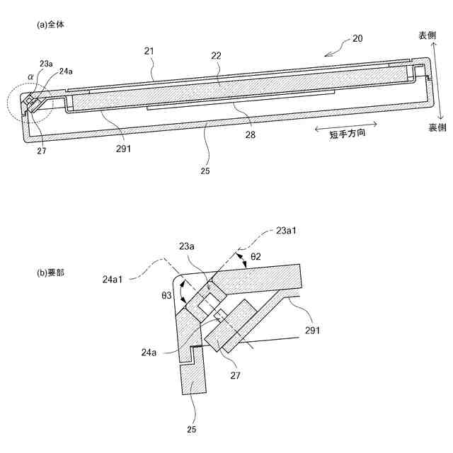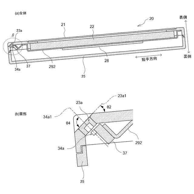 前記導光部材は、前記導光部材の表面が前記表示画面に対して45°±15°の角度となるように配置され、