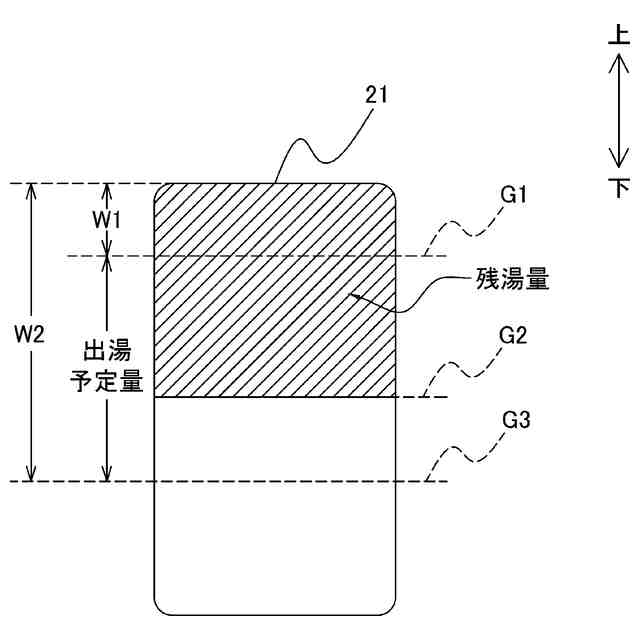 前記制御部は、前記残湯量が、前記出湯予定量と所定の第1水量を合わせた、第2水量より小さい場合は、前記出湯指示に応じて出湯を行う、