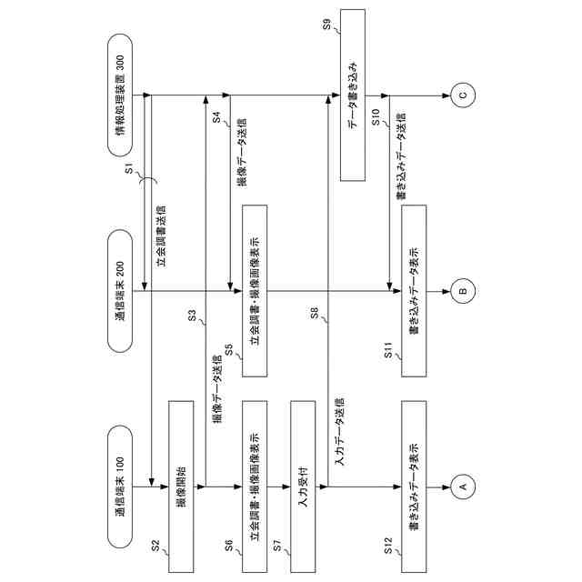 前記第3の通信部は、前記データ書き込み部が前記立会者画像データが示す立会者画像を重ねた調書データを前記第1の通信端末へ送信し、