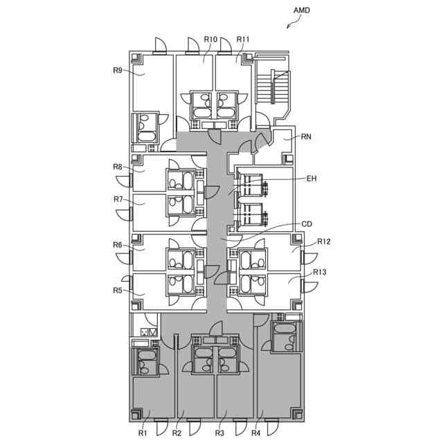 建造物内での騒音レベルは、その居住性において重要な要素を占めており、このため、工事の前段階から建造物内での騒音レベルを解析し、必要に応じて構造を再検討する等の騒音対策を施す必要がある。例えば、室内騒音の予測に関して、住宅内の界壁だけでなく、設計者が想定した音の伝搬経路(部屋、廊下、吹き抜け等)上の構造物による影響を間取り図上で検出し、出入り口等の開口部の面積やターゲットとの距離等から開口部を介した騒音レベルを計算する住宅設計システムの先行技術が知られている(例えば、特許文献1参照。)。
