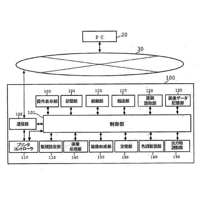 用紙に画像を形成する画像形成部の下流側にインラインセンサ等で構成される読取部を接続し、画像形成された用紙上の画像を読み取る画像形成装置が存在している。また、用紙に画像を形成する画像形成装置の後段に読取装置(出力物読取装置)を接続し、画像形成された用紙上の画像を読取装置で読み取る画像形成システムが存在している。