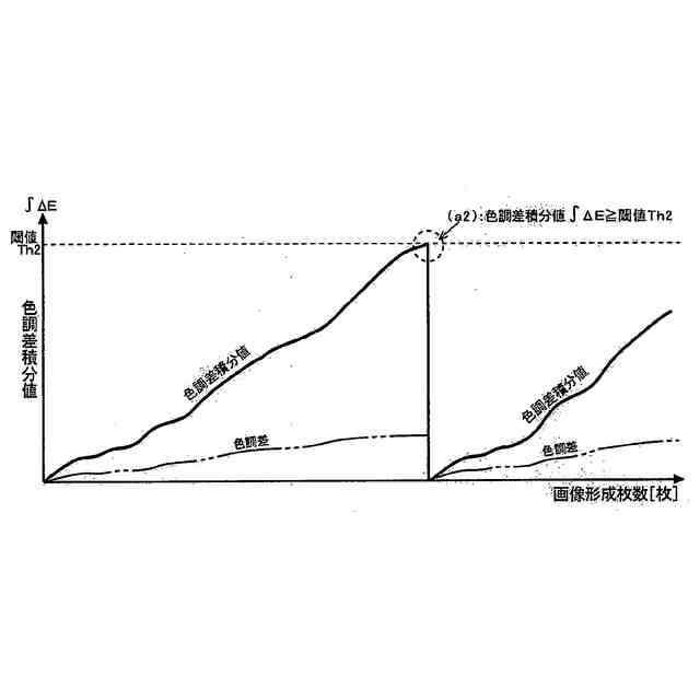 【解決手段】画像形成部を備え、補正用画像データを用いて画像形成部の色補正を行う画像形成装置を、画像形成部により補正用画像データとは異なる画像形成用画像データに基づいて形成された用紙上の画像を読み取る読取部と、画像が形成された1枚目の用紙の読み取り画像データに基づく値と画像が形成されたn枚目の用紙の読み取り画像データに基づく値とを比較し、監視対象に基づいて色調差を監視する第1監視処理と、一定期間において、画像が形成された複数の用紙の読み取り画像データに基づく値を比較し、監視対象に基づいて色調差を監視する第2監視処理とを行う色調監視部と、を備え、色調差と所定の閾値とを比較した比較結果に基づいて色補正を行う第1色補正と、一定の期間または一定の画像形成枚数ごとに色補正を行う第2色補正を行う構成とする。
