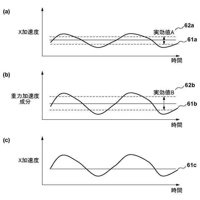 従来から、撮像装置において、3軸方向の加速度と3軸回りの角速度とを検出し、これらの信号に対してマトリクス演算を行って、X方向の加速度に加わる重力加速度の変動量を求める技術が、例えばナビゲーション用途で利用されている(特許文献1参照)。