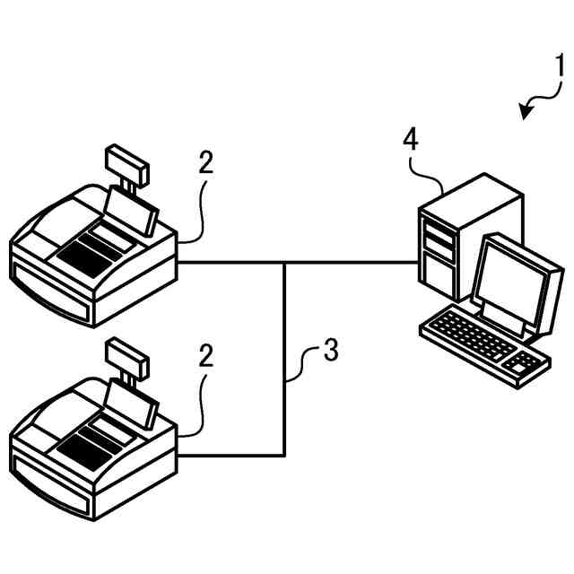 図1は、本実施形態に係るPOSシステム1の構成の一例を示す説明図である。POSシステム1は、POS端末2と、ストアサーバ4とを備える。そして、POSシステム1は、店舗内ネットワーク3を介して、POS端末2とストアサーバ4とを接続している。店舗内ネットワーク3は、例えば、店舗に設置された各装置を接続するLAN(Local Area Network)等である。