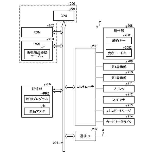 以下、添付図面を参照して、商品販売データ処理装置及びプログラムの実施形態を詳細に説明する。なお、以下に説明する実施形態は、商品販売データ処理装置及びプログラムの一実施形態であって、その構成や仕様等を限定するものではない。本実施形態の商品販売データ処理装置は、免税店等の店舗に導入された、一取引にかかる商品の登録・精算に係る商品販売データ処理を行うPOS(Point Of Sales)端末への適用例である。
