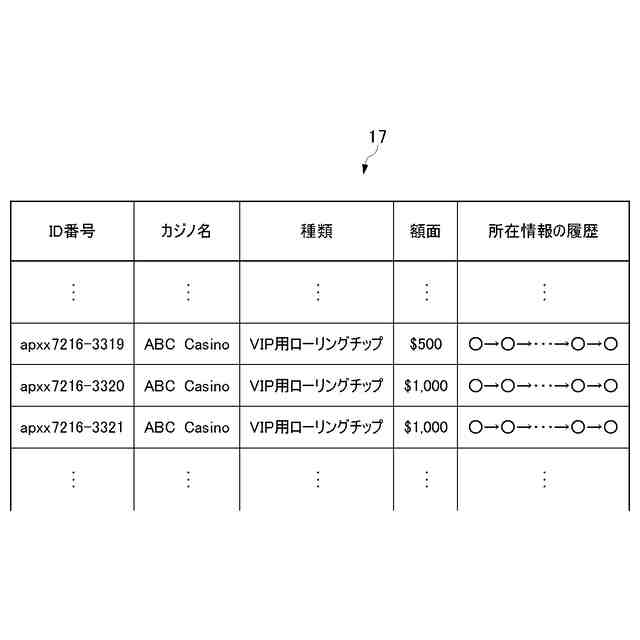 さらに前記制御装置は、勝ちプレイヤの賭けチップと当該勝ちプレイヤに対して払い出された支払いチップとが、前記チップ配置エリア外に移動することを認識し、前記支払いチップのID情報と、当該支払いチップと同じタイミングで前記チップ配置エリア外に移動した前記賭けチップのID情報とをデータベース上で関連付け可能な構成であり、
