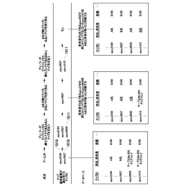 そこで本発明では、各々の遊技用代用貨幣の所有者情報を常時把握、管理して、セキュリティを高めるために、ディーラがプレイヤに対して遊技用代用貨幣を支払い、当該遊技用代用貨幣の所有者がカジノからプレイヤに移った際に、どのプレイヤに当該遊技用代用貨幣の所有が移ったかを把握し、記録することを可能にするシステムを提供することを目的とする。