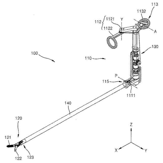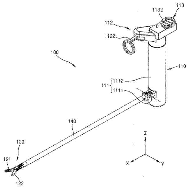 【解決手段】第1ジョー121及び第2ジョー122を含むエンドツール120、エンドツールのピッチ運動を制御するピッチ操作部111と、エンドツールのヨー運動を制御するヨー操作部と、エンドツールのアクチュエーション運動を制御するアクチュエーション操作部と、を含む操作部110、ヨー操作部またはアクチュエーション操作部の回転を、第1ジョーワイヤまたは第2ジョーワイヤを介して、第1ジョーまたは第2ジョーに伝達する動力伝達部、及び操作部とエンドツールとを連結する連結部を含み、ピッチ操作部は、Y軸を中心に回転自在に形成され、少なくとも操作部のいずれか1動作状態において、操作部の少なくとも一部が、自体の回転軸より、エンドツールに近く形成される。