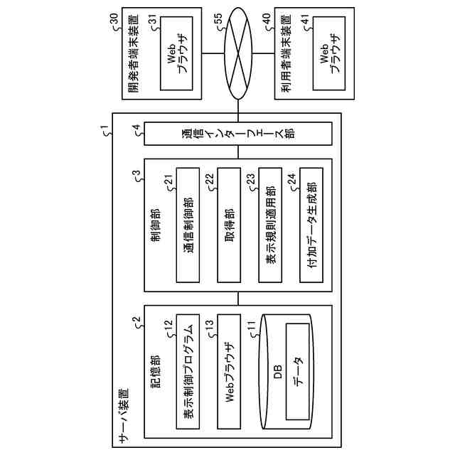 取得されたデータに対して、予め設定された所定の表示規則を適用する表示規則適用部と、