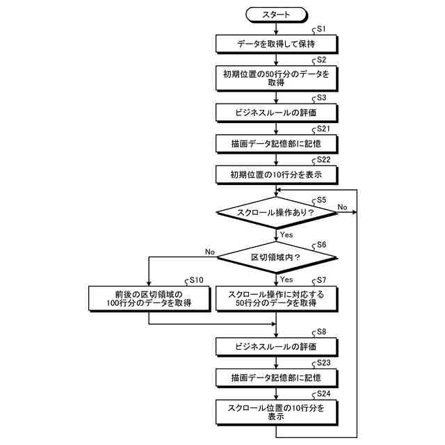 ここで、例えばセル等の表示オブジェクトに対して所望の表示規則(状態制御規則)が設定されている場合がある。表示規則が設定されている場合、最初に全データに対して表示規則を適用処理し、表示規則が反映された全データの中から、スクロール位置に対応するデータを抽出してスクロール処理を行う必要がある。このため、表示規則が設定されている場合、スムーズなスクロール制御が困難となる問題があった。
