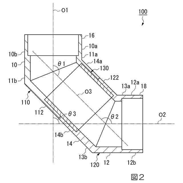 前記第1直管部の軸線と前記第3直管部の軸線とが交差し、かつ前記第2直管部の軸線と前記第3直管部の軸線とが交差しており、