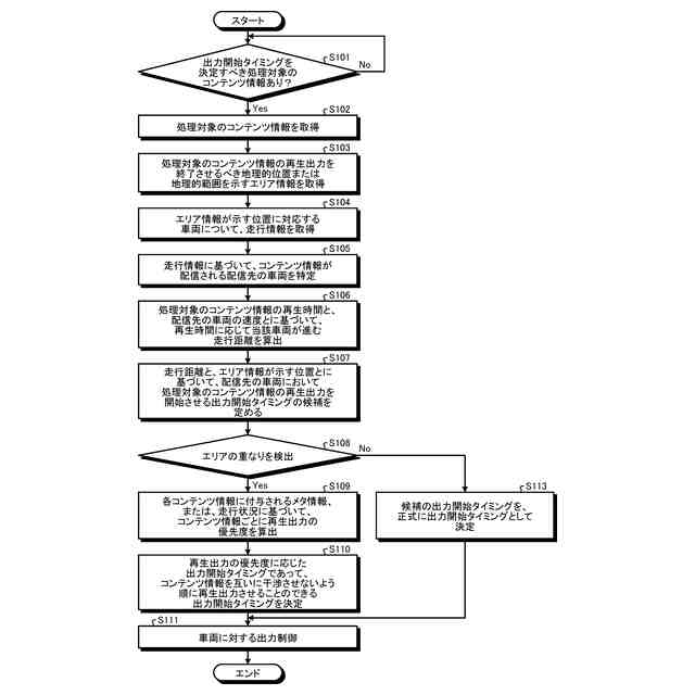 したがって、上記の従来技術では、予め決められている地点でコンテンツ情報の再生出力が終了するよう、適切なタイミングでコンテンツ情報の再生出力を車両において開始させることができるとは限らない。