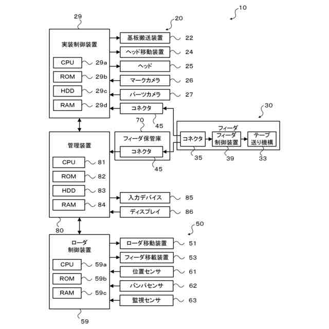 部品実装システムの電気的な接続関係を示すブロック図である。