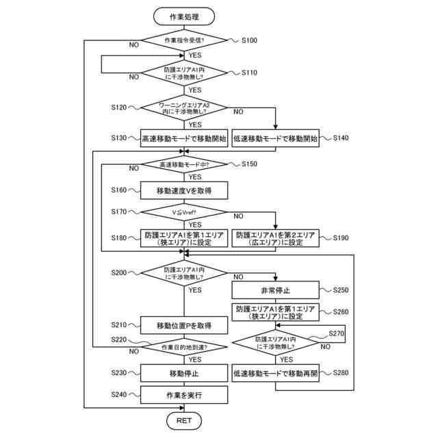 しかしながら、上述した作業装置では、監視エリア内に人や物が進入すると、非常停止するため、監視エリアを広くすると、装置の稼働率が低下し、作業効率が悪くなる。一方、ユーザ設定により監視エリアを狭くすれば、非常停止の頻度を少なくすることができ、稼働率を高めることができるものの、安全性の確保が困難となる。