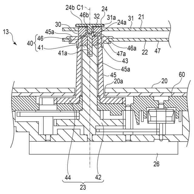 このような指針の支持構造において、4番車軸の先端部に固定された駆動磁石と、秒針軸の下部に取り付けられた従動磁石と、を備え、磁石の磁力を用いた機構が開示されている(例えば、特許文献1参照)。指針の支持構造に磁石の磁力を用いた機構において、時計が落下などによる衝撃を受けると、磁石の位置がずれ、あるいは磁石の反発力が生じる等により、支持構造の破損や指針の位置ずれが発生する場合がある。