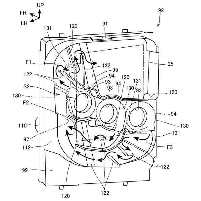 【解決手段】作動部を収容する第1空間S1と、第1空間S1の内外を連通する連通穴と、連通穴を介した空気の流動を促進させる送風機94と、送風機94から流出する空気、または送風機94に流入する空気が流れる流路が設けられる第2空間S2と、を備え、送風機94は、第1送風機、及び第2送風機を有し、流路は、第1送風機から流出する空気、または送風機94に流入する空気が流れる第1流路F1と、第1流路F1と区画して設けられ、第2送風機から流出する空気、または送風機94に流入する空気が流れる第2流路F2と、を有する。
