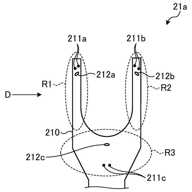 第1の先端領域、第2の先端領域、および後端領域を有する上面を有する本体であり、前記第1の先端領域および前記第2の先端領域は、第1の方向からみて互いに重複している、本体と、