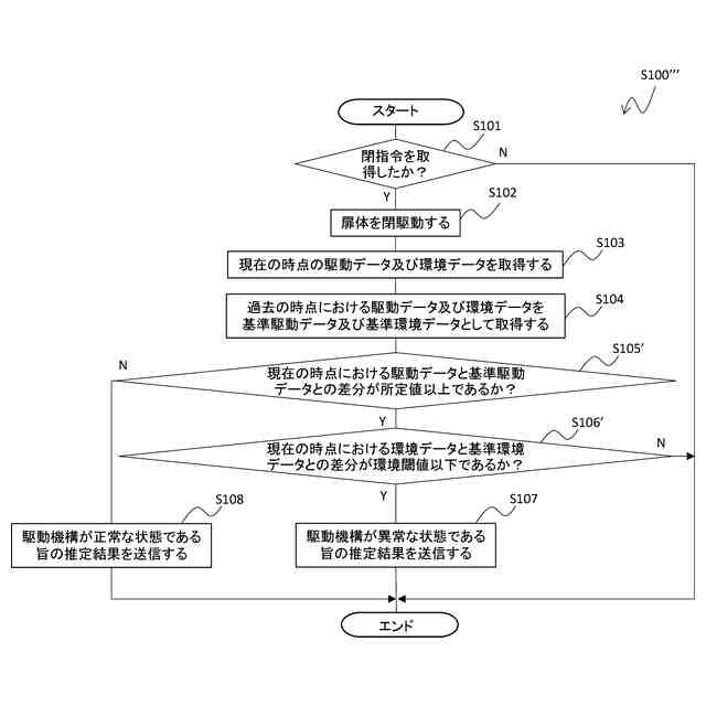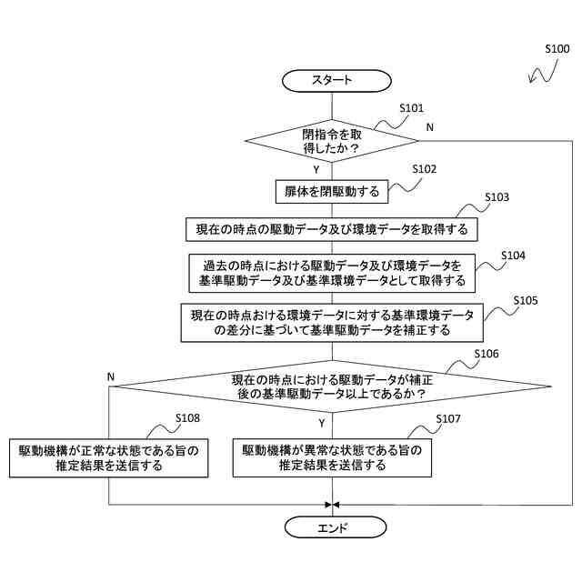 ホームドア装置の周囲又は内部の環境の変化に起因して、ドアの駆動機構にかかる負荷が変化する結果、例えば駆動機構におけるモータの電流値等も変化する。一方で、特許文献1に記載のような従来技術では、例えば、電流値が許容範囲外になった場合に、実際にはその原因が環境の変化に起因するものであってとしても、駆動機構の異常に起因するものと誤判断してしまう場合があった。そのため、駆動機構の状態の推定精度の面で改善の余地があった。