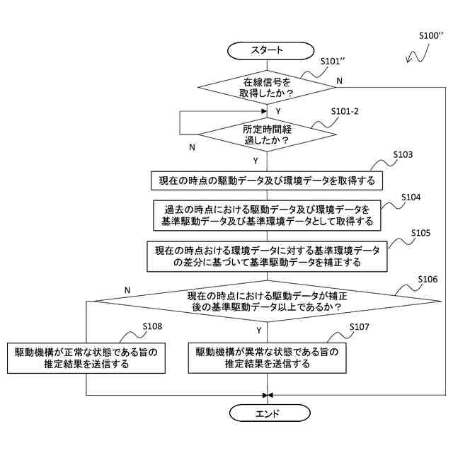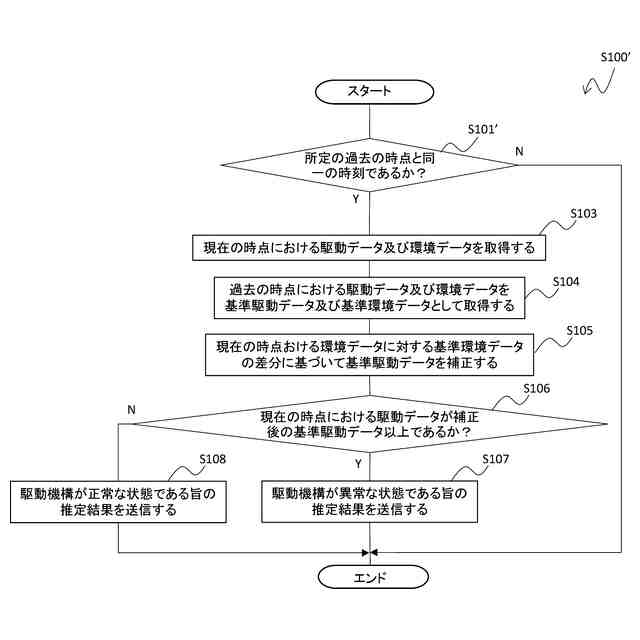 前記状態推定部は、前記第1時点で取得された前記駆動データと前記第2時点で取得された前記駆動データとの差分が所定値以上である場合に、前記第1時点で取得された前記環境データと第2時点で取得された前記環境データとの比較結果にさらに基づいて前記第2時点の前記駆動機構の状態を推定する、