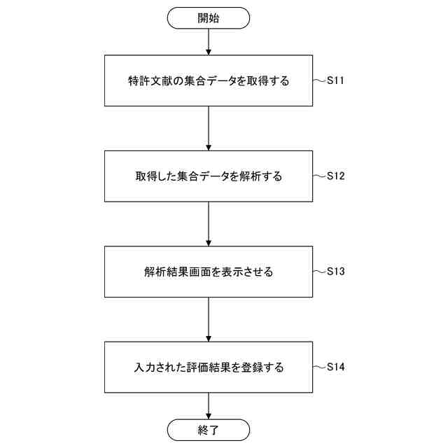 特許文献データに含まれる特許請求の範囲を示すテキストデータを解析して、前記特許請求の範囲に含まれる請求項ごとに、発明の構成要件を特定する解析部と、
