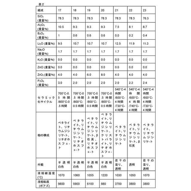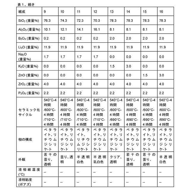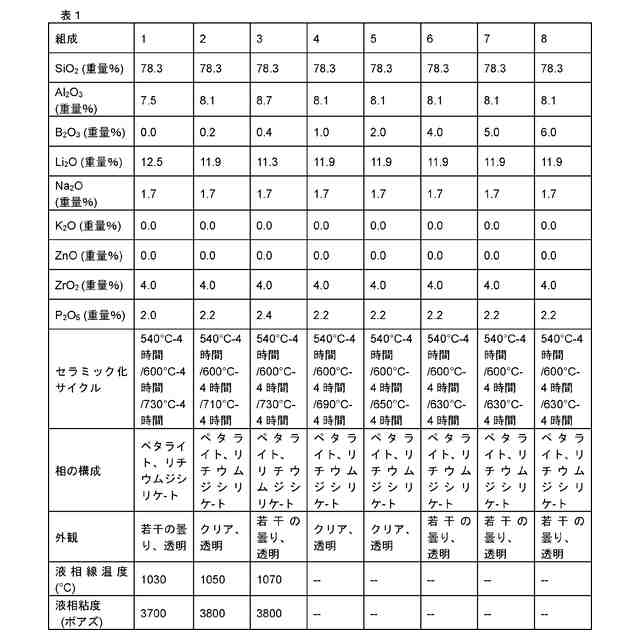 系のリチウムジシリケートガラスセラミックは、歯科用クラウン、ブリッジ及びオーバレイとしての使用のために開発及び販売されている。上記ガラスセラミックの、相互に連結した平板状結晶の微細構造は、高い機械的強度及び破壊靭性、並びに優れた耐化学性を提供する。この分野の組成物は、コーニング社において発明され、Beallらによって特許文献1(「799特許」)として特許取得された。