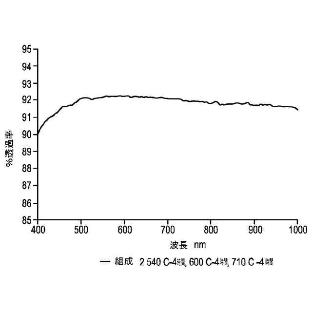 いくつかの実施形態では、上記ガラスセラミック物品は透明である。いくつかの実施形態では、上記ガラスセラミック物品は、400nm~1000nmの波長範囲の光に関して少なくとも85%の透過率を有する。いくつかの実施形態では、上記ガラスセラミック物品は、400nm~1000nmの波長範囲の光に関して少なくとも90%の透過率を有する。いくつかの実施形態では、上記ガラスセラミック物品は透明である。いくつかの実施形態では、上記ガラスセラミック物品は、500nm以下又は100nm以下の最長寸法を有する粒子を含む。