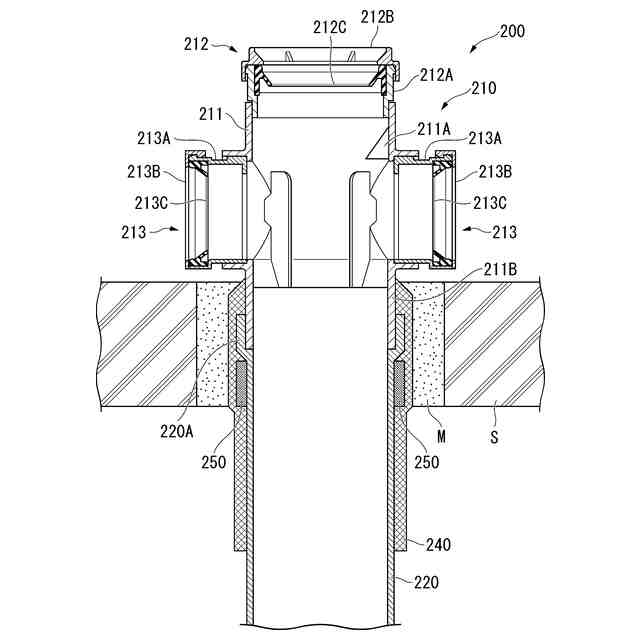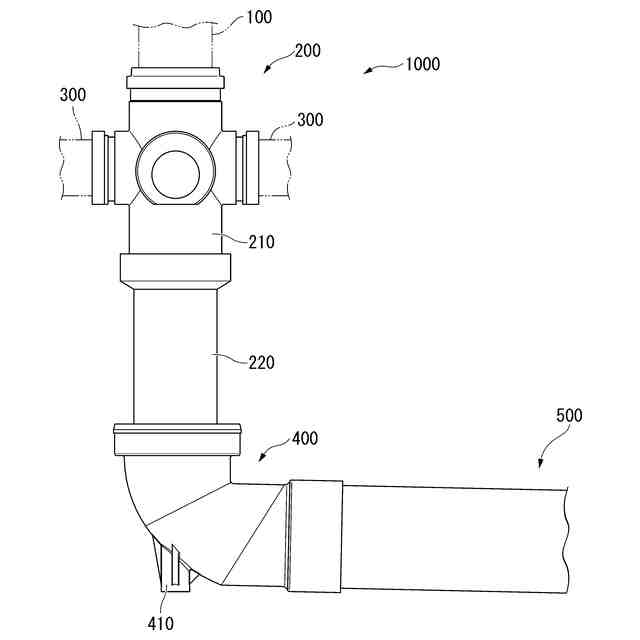 これに対し、下側に位置する直管部が受口であると、上述のように隙間に排水が移動しても、重力に逆らって上側に移動することはない。つまり、集合部の直管接続部が受口部の内側に挿入される構造とすることで、直管接続部と受口部との間に隙間が生じた場合でも、隙間から排水が漏れ出すことを防ぐことができる。よって、上側に位置する集合部を受口にする場合と比較して、止水性を確保することができる。