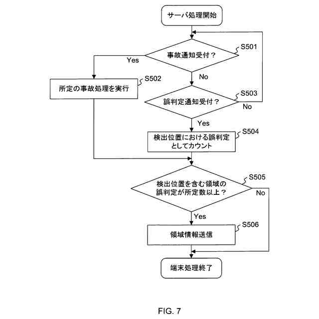 請求項16に記載の発明は、コンピュータに、移動体から前記移動体に事故が発生したと判定されたことを示す事故判定情報及び当該事故が発生したとされた地点を示す発生地点情報を含む事故通知を受け付けるステップと、前記事故通知を取り消すための取消通知を受け付けるステップと、前記取消通知により取り消された事故通知に含まれる発生地点情報を記録するステップと、当該記録された発生地点情報に基づいて取消通知多発領域を特定するステップと、を実行させることを特徴とする。