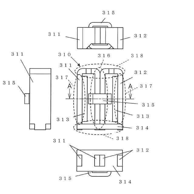 図13Bは、実施の形態1に係る別のヨーク構成を示す4面図である。