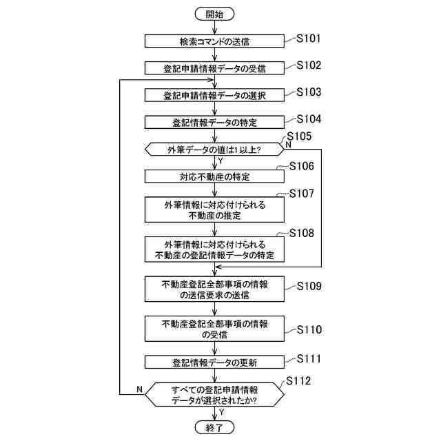 登記申請情報取得手段が、外筆情報が記録されている登記申請情報を取得するステップと、
