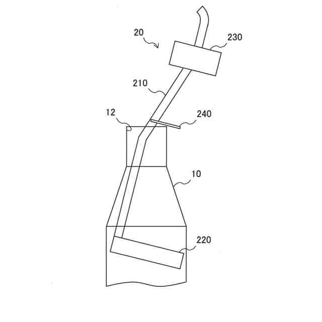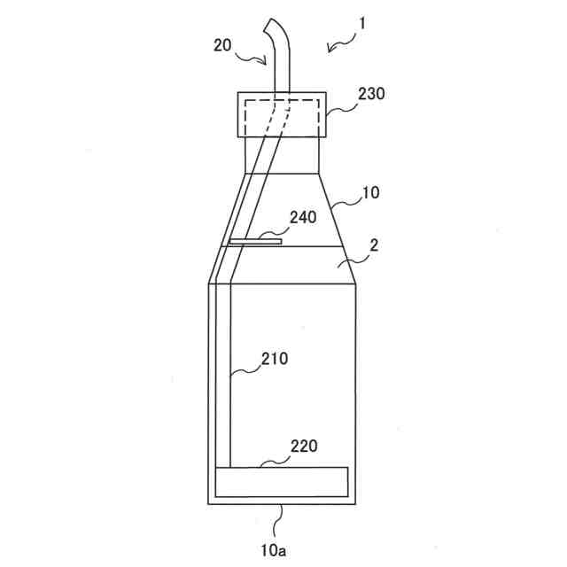 本実施形態では、容器10はペットボトルであるものとする。この場合、連通孔12は内容物2の注入口としても、飲み口としても機能する。そのため、連通孔12の開口面積は、容器10の載置姿勢における貯蔵室11の水平断面積よりも小さい。また、容器10は透明又は半透明である。