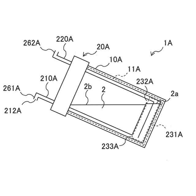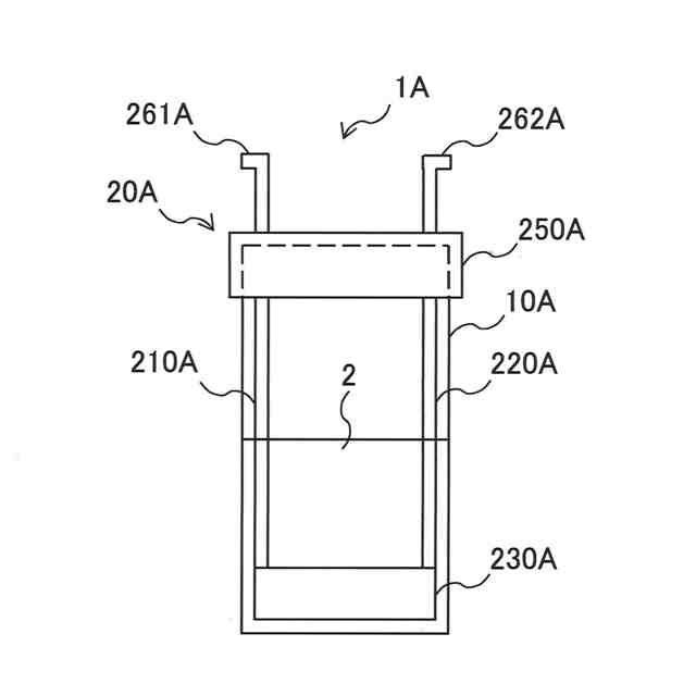 図2は容器10Aの模式図である。容器10Aは貯蔵室11Aを区画する。貯蔵室11Aは内容物2を貯蔵する空間である。