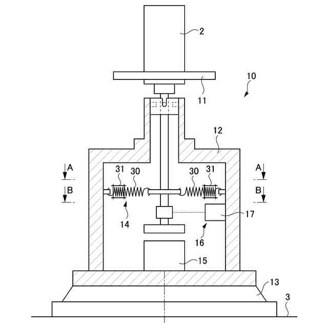 特許文献1には、構造物の制振装置が示されている。制振装置は、付加質量と、この付加質量を揺動可能に支持する積層ゴムと、積層ゴムを付勢するコイルばねと、コイルばねの固有周期を調整する固有周期調整機構と、よりなる。固有周期調整機構は、コイルばねの他端が係合する係合部材と、係合部材を支持する支柱と、係合部材を支柱に連結するボルトと、からなる。コイルばねの一部を係合部材の螺旋溝に係合することにより、コイルばねのばね定数が変更される。