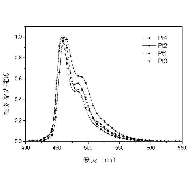 OLEDを進化させる上で最も重要なのは発光材料の設計と開発である。現在使用されているOLED部品の発光層はほぼ全てがホスト-ゲスト発光系機構を用いており、即ち、ホスト材料にゲスト発光材料がドープされており、ホスト材料は一般的にゲスト発光材料よりエネルギー準位が高く、エネルギーをホスト材料からゲスト材料に伝達することで、ゲスト材料を励起して発光させる。よく用いる有機燐光ゲスト材料は、一般的に、イリジウム(III)、白金(II)、パラジウム(II)などの重金属原子である。白金(II)錯体燐光材料は、低コストで大いに用いられる見込みがある。しかしながら、現在、白金錯体材料及び部品の開発には依然としていくつかの技術上の難題があり、どのようにすれば、発光スペクトルにおけるショルダーピークの高さを低減させて材料分子の発光の色純度を向上させられるかは、青色及び深青色発光材料にとって特に重要な問題であり、トップエミッション部品の商品化の効率とそのエネルギー利用率に大きな影響を与える。したがって、新規な燐光金属白金(II)錯体の開発が急務となる。