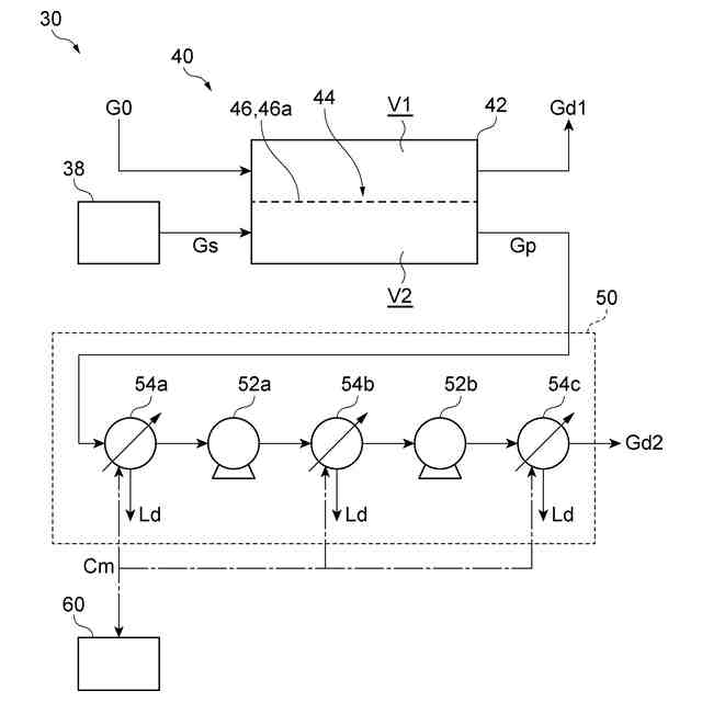 [1]二酸化炭素を透過する膜によって原料ガスに含まれる二酸化炭素を前記原料ガスから分離する分離処理部と、
