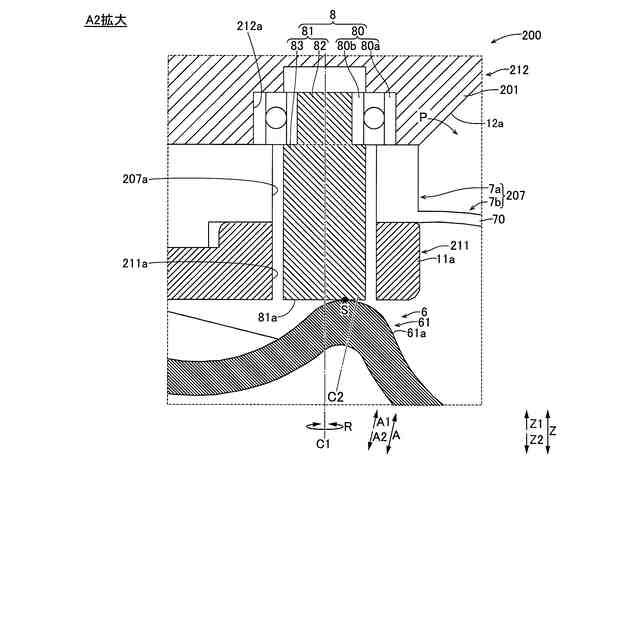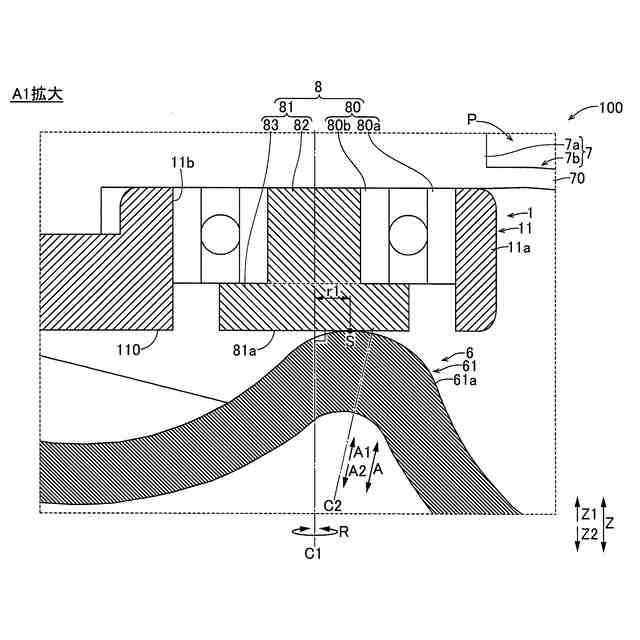 上記特許文献1では、揺動体が揺動する際に、静止状態のハウジングの凹部の表面において、揺動する揺動体の半球状の突起からなる揺動支点がこすられて摩耗が生じやすいという問題点がある。すなわち、静止状態のハウジングの凹状と半球状の突起からなる揺動支点との接触箇所が滑り接触となり、滑り摩擦により摩耗が生じやすいという問題点がある。