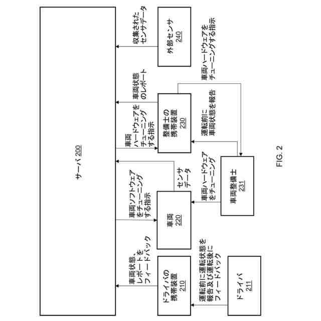 関連技術において、車両オペレータ及び車両整備士は、車両をチューニングして車両動作のパフォーマンスを最適化するために(例えば、車両の加速時間、エンジン安定性等を改善するために)、一緒に働くことがある。特に、モータスポーツのための車両動作の場合、車両オペレータは、レース場の現在の状態(例えば、路面のタイプ、路面状態、天候、温度、湿度、風向き、風速等)並びに主観的なパフォーマンスの詳細(速度、安定性等)に基づいて、車両のパフォーマンスに関するフィードバックを提供することができる。車両に実装されうるセンサ(例えば、速度計、カメラ等)がフィードバックを自動的に提供することができる。車両整備士は、このフィードバックに基づいて解釈し、それに応じて車両に対するチューニング調整(例えば、電子制御ユニット(ECU)に対するソフトウェアベースの調整、又は(サスペンション、タイヤ圧等のような)車両の物理的な部品に対するハードウェアベースの調整)を行う。その後、車両パフォーマンスを最終的に最適化できるように、車両オペレータが車両整備士にフィードバックを提供するプロセスが繰り返される。