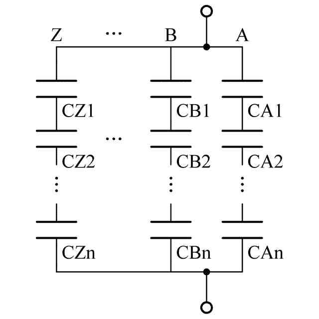 前記第二上部電極上に設置され、前記第一下部電極に電気的に結合された第三下部電極と、