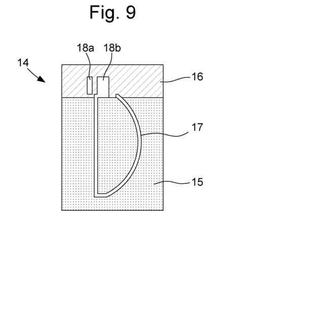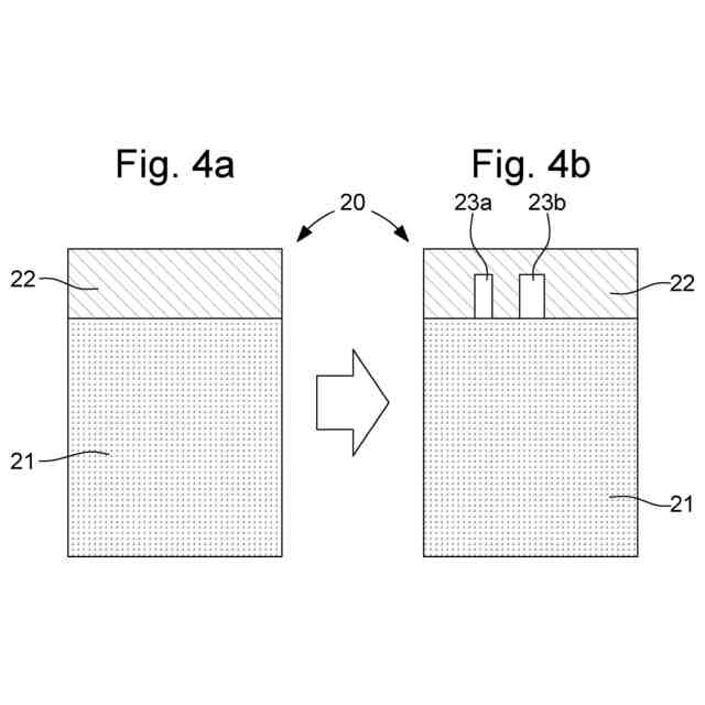 図1は、上述された積層法を使用して電池を製造するのに適したモノセル1を示す。電池は、図2aないし図2dに別々に示した一定数の重ね合わせ部品を含む。モノセルの底部には、複数の電極のうちの一つが存在する。この例示的なケースでは、アノード2が図2aに示されてはいるが、カソードであってもよい。アノードは、被覆電極部分3および非被覆タブ4を含む被覆金属箔から形成される。アノードコーティングは、再充電可能リチウムイオン電池の場合、グラファイトコーティングであってよい。タブ4はアノード箔と一体である。すなわち、タブは、被覆部分3から出るように延びる箔の非被覆部分である。アノードは「D」字形態に切断されているが、これは単に一つの例示的なモノセル形状にすぎない。他の形状も可能である。