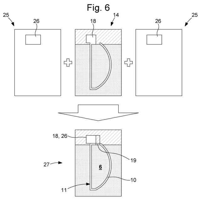 ・前記第2の箔(20)における前記第2の位置合わせ開口(23a)が、前記セパレータシート(25)における前記一対の位置合わせ開口(26)に、および前記第1の箔(14)における前記第1の位置合わせ開口(18,18a)に位置合わせされるように、前記第2の箔(20)を前記第1のアセンブリ(27)に位置合わせするステップと、