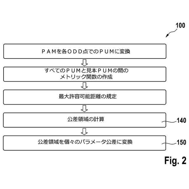 【解決手段】コンピュータ実装された方法であって、最大許容可能距離および非類似度メトリックをベースとして、目標パラメータサンプルの周りのODD内の公差領域を決定するステップであり、非類似度メトリックが、目標パラメータサンプルに割り当てられたパラメータ化されたシミュレーションモデルと、それぞれ1つのパラメータ化されたシミュレーションモデルとの間で、距離を定義するステップを含む、コンピュータ実装された方法が開示される。