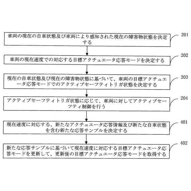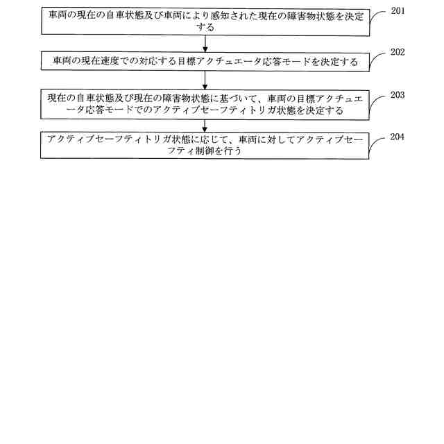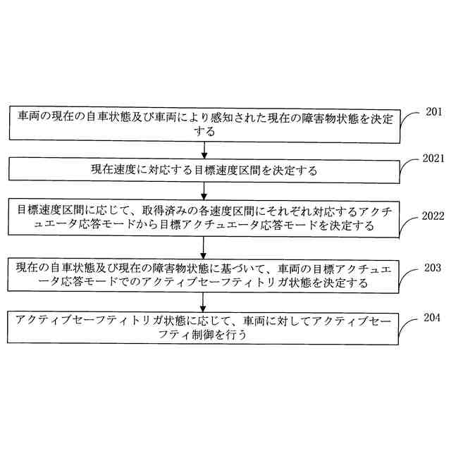 【解決手段】両走行中のアクティブセーフティ制御方法は、車両の現在の自車状態及び車両により感知された現在の障害物状態を決定するステップと、車両の現在速度での対応する目標アクチュエータ応答モードを決定するステップと、現在の自車状態及び現在の障害物状態に基づいて、車両の目標アクチュエータ応答モードでのアクティブセーフティトリガ状態を決定するステップと、アクティブセーフティトリガ状態に応じて、車両に対してアクティブセーフティ制御を行うステップと、を含む。