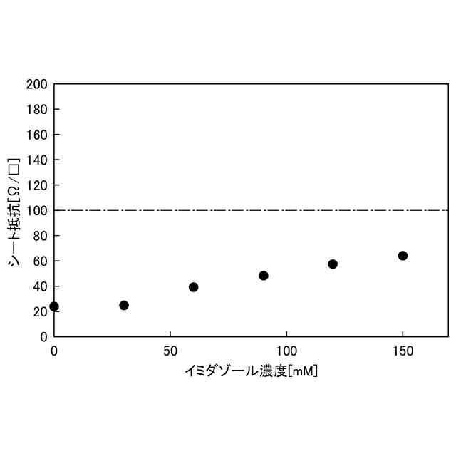 実施例及び比較例1の電極シートのイミダゾール濃度とシート抵抗との関係を示す図である。