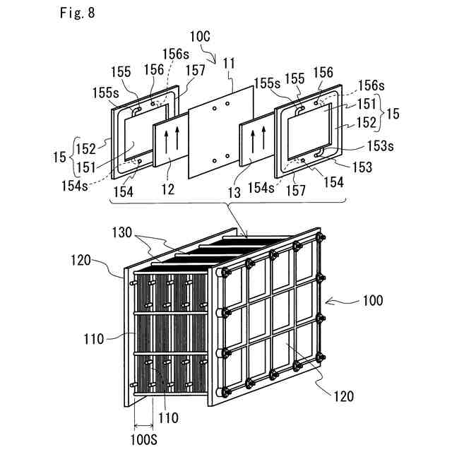 図8は、実施形態のレドックスフロー電池システムに備わるセルスタックの概略構成図である。
