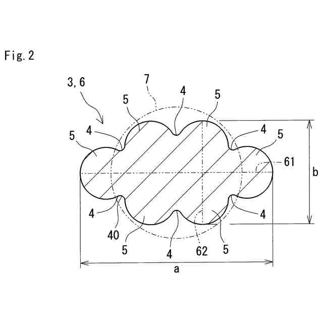 前記仮想円は、前記横断面の面積に等しい面積を有する真円である、