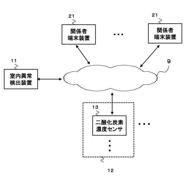 好適には、前記第4の工程は、前記検出した二酸化炭素濃度が一定基準まで落ちた後に、前記センサ検出結果が前記室内の人を一定時間検出しないという第1の条件を満たした場合に、前記人に異常が発生したと判定する。