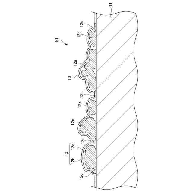 本発明の別の実施形態に係る構造体51の断面の一部を模式的に示す断面図である。