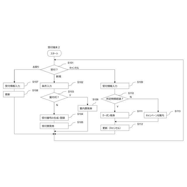 従来、飲食店において席案内をしてもらうための受付と、受付をした客を空き席に誘導する案内とを端末装置の発券により実行するシステムが普及している。このシステムにより、店員を介することなく、来店客を座席まで誘導することができる。